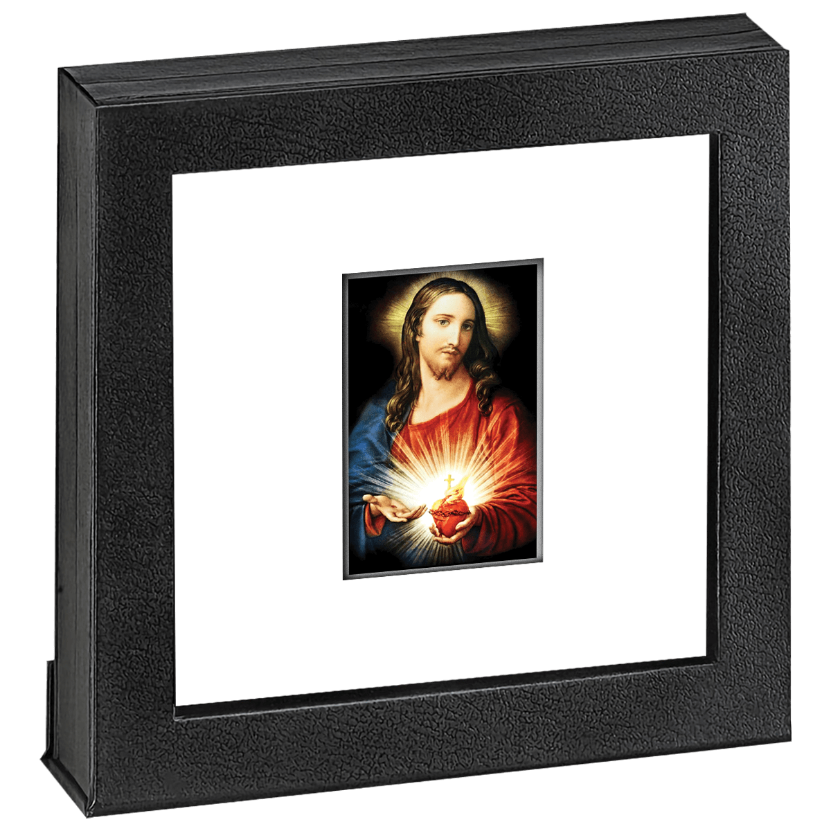 Srebrna sztabka kolekcjonerska wybita w Mennicy Polskiej z wizerunkiem obrazu Najświętsze Serce Pana Jezusa autorstwa Pompeo Batoni.